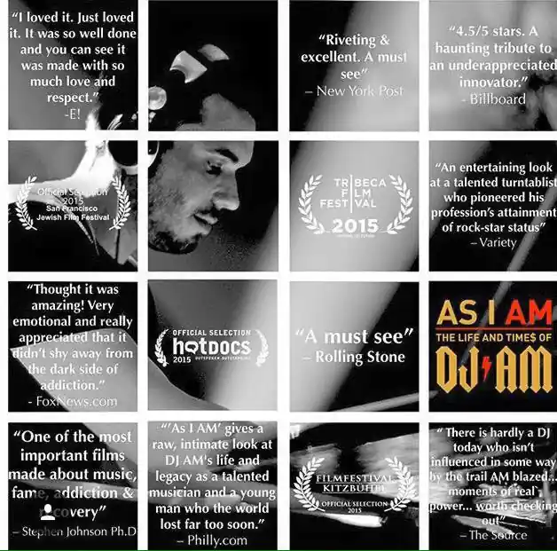 As I AM: the Life and Times of DJ AM covers the mash-up pioneer's meteoric rise to superstardom, his long-running struggle with drug addiction, titanic efforts to help others in recovery, tabloid romances with models and actresses, top-shelf endorsement deals, appearances in hit series and blockbuster films like Entourage and Iron Man 2.